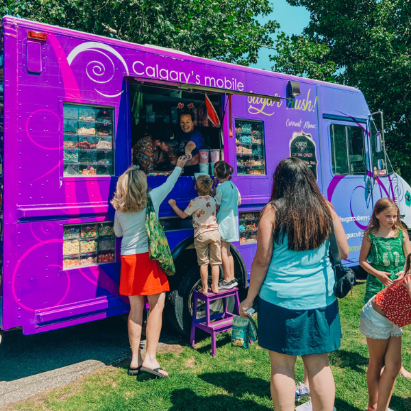 Our candy truck offers a one-of-a-kind adventure for your guests to step right up and choose their favourite treats at the truck window.